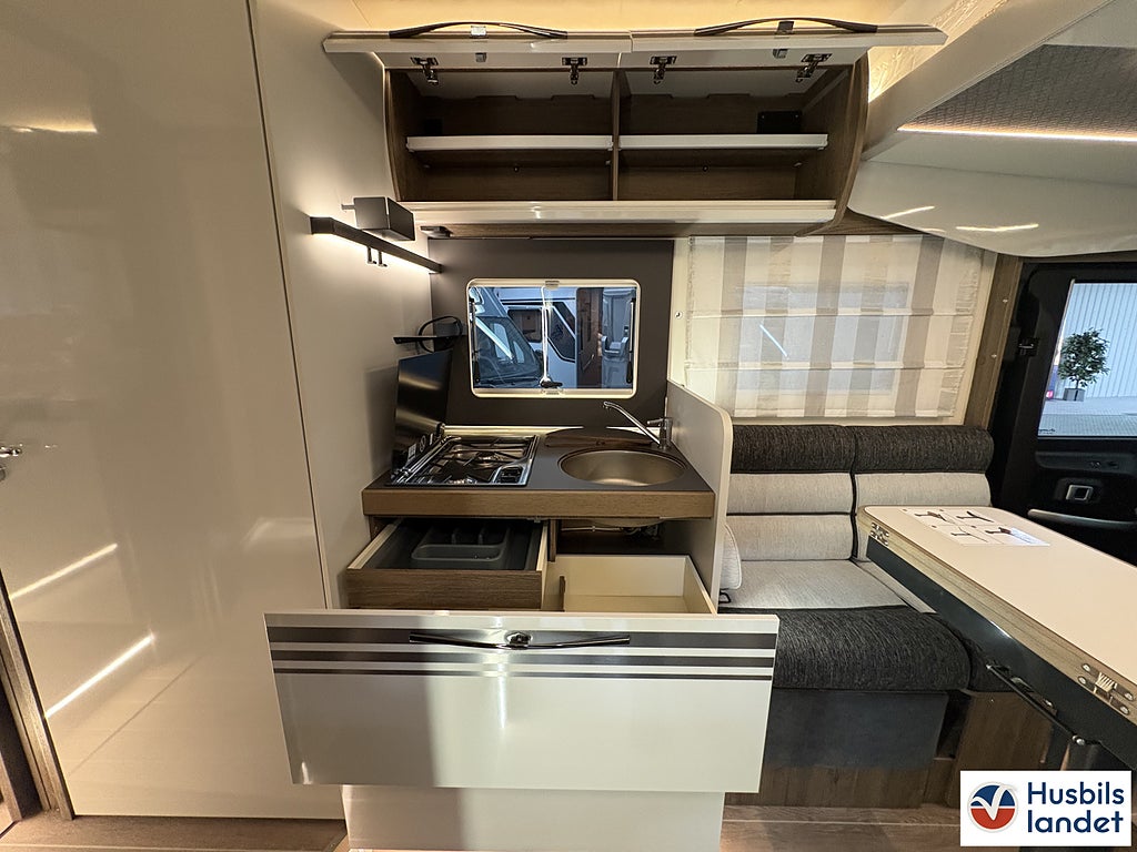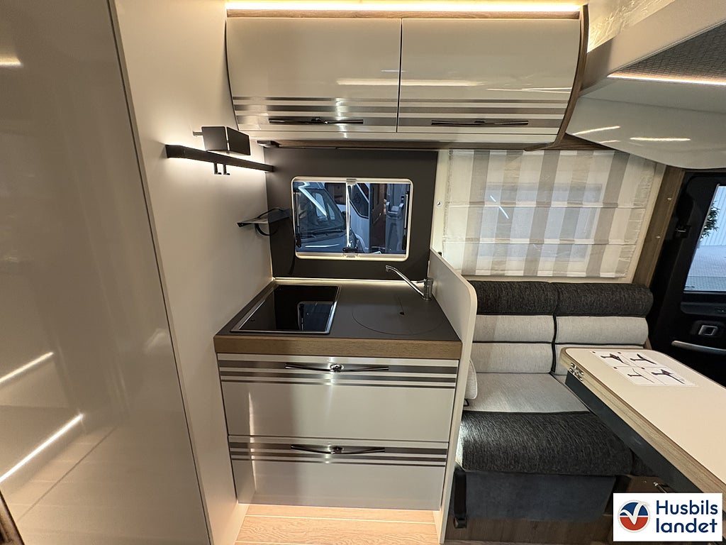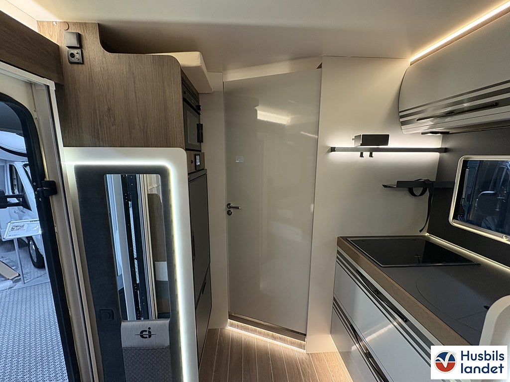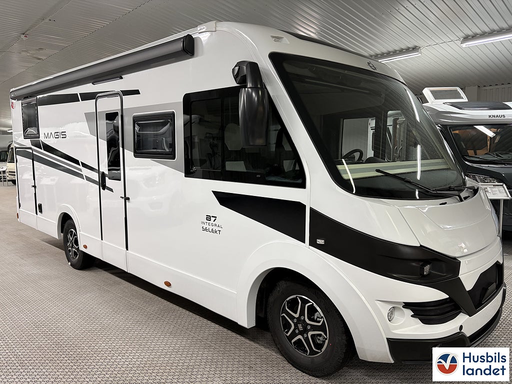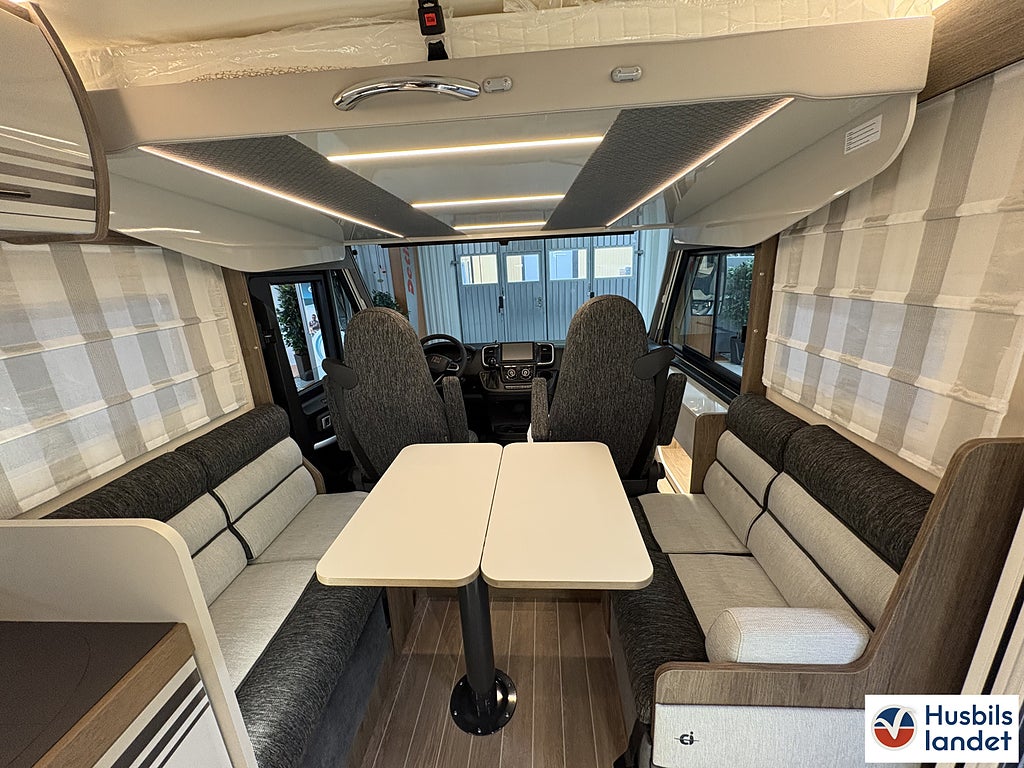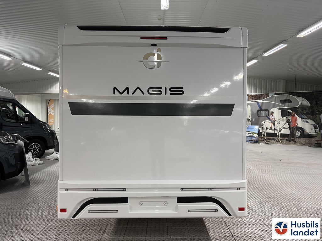 Klädsel: Daisy (Tyg + Konstläder), Märke chassi: Fiat Ducato, Upptäck en helintegrerad husbil som kombinerar elegant italiensk design med smart planlösning och generös standardutrustning. CI Magis 87 erbjuder rymlig bodel, bekväma sovplatser för upp till 4 personer, modern LED-belysning och praktiskt garage med gott om förvaring., Byggd på pålitliga Fiat Ducato-chassit med god körkomfort och säkerhetssystem som ABS och ESP, perfekt för både långa Europaresor och spontana weekendäventyr., En komplett och välutrustad husbil redo för nya upplevelser från dag ett., Svängbara stolar förarplats, Airbag förare och passagerare, Apple CarPlay/Android Auto, TPMS (Däcktryckssensorer), Läderklädd ratt och Växelspak, Elektrisk parkeringsbroms