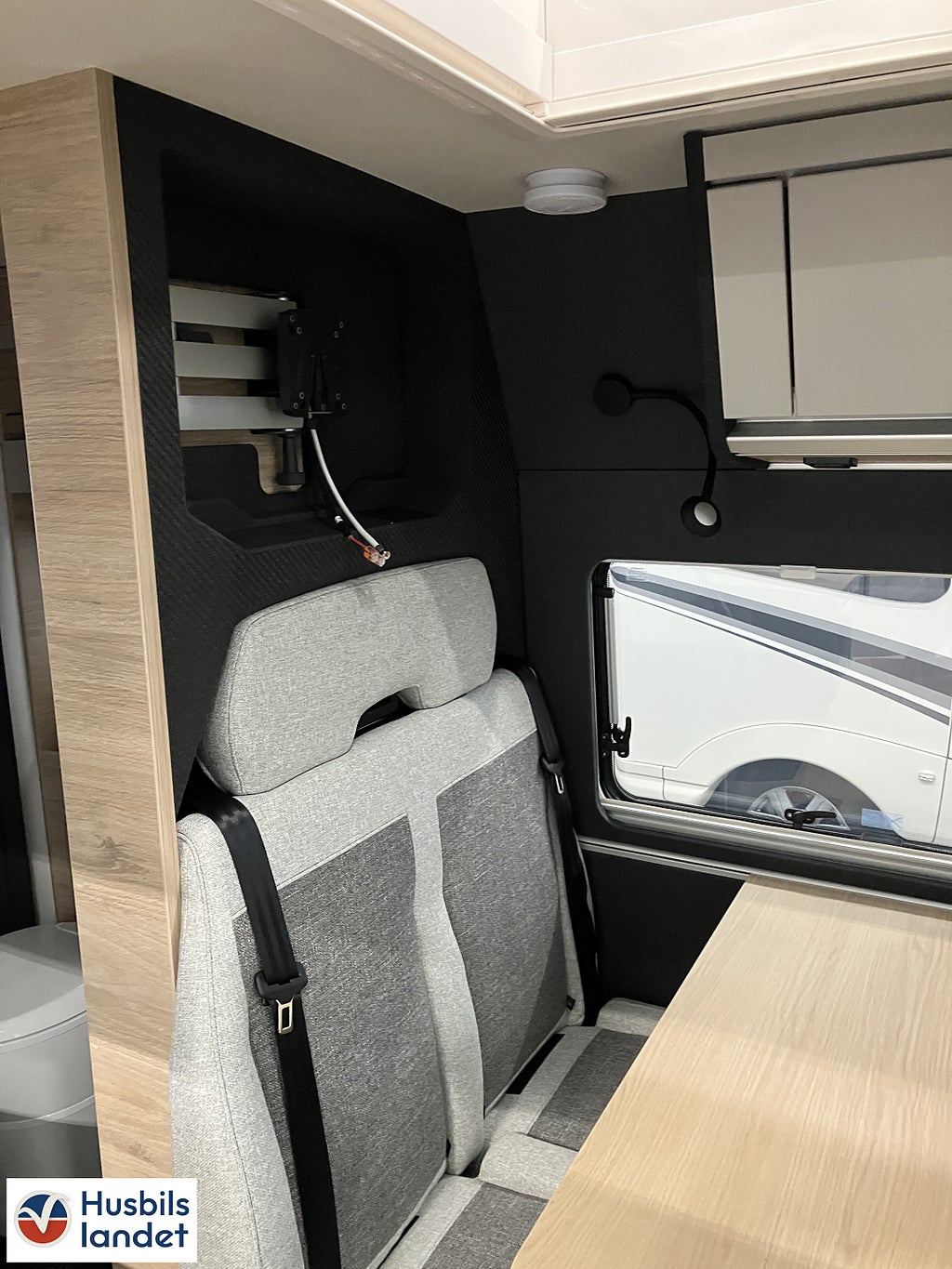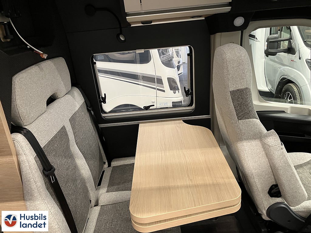 Hjuldrift: Framhjulsdrift, Lackering Metallic: Artense Grey, Dragkrok med avtagbar dragkula, ?Autonom körning ? Nivå 2?-paket, TV-hållare vid dinette inkl. kombikontakt, Elektrisk parkeringsbroms, Värmesystem: Truma luftburen värme Combi 6D diesel, Truma iNetX kontrollpanel, Aluminiumfälgar med allväders däck, Kompressorkylskåp 84 liter, Färskvattentank 102 liter, Isolerad och uppvärmd spillvattentank 90 liter