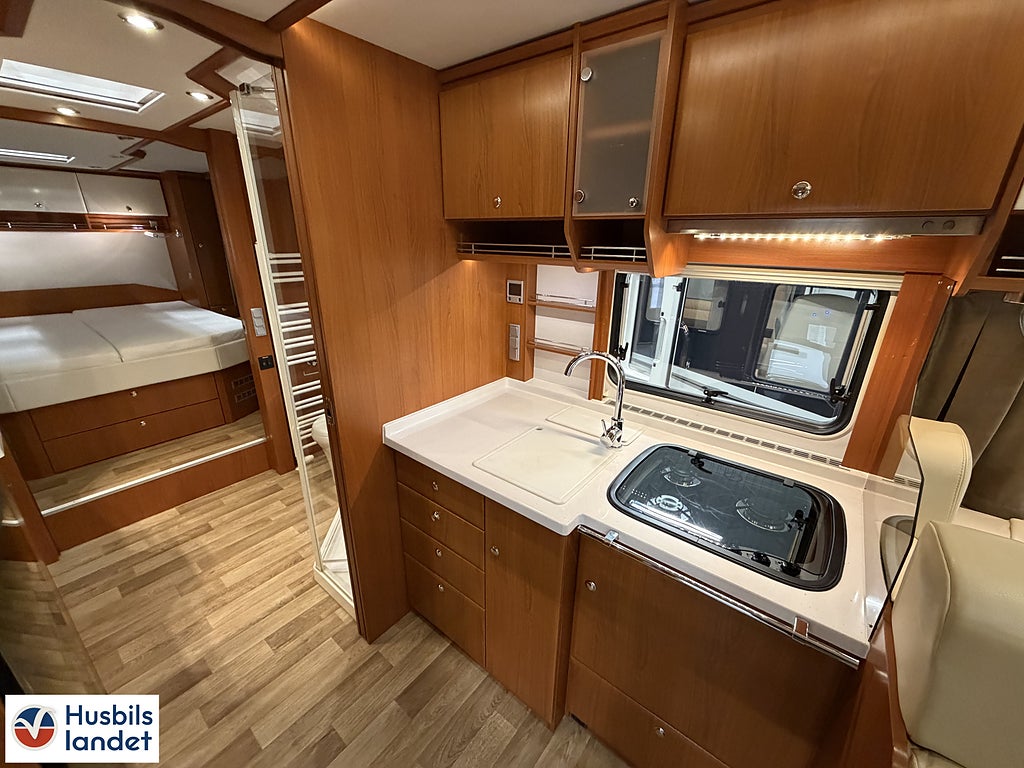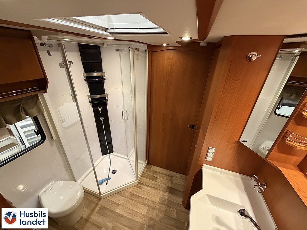 Förarhyttsäten i lyxutförande med stötdämpning och luftkonditionering, (Parabol & 2 x TV Ej garanti och ingen funktionskontroll), Fast toalettank 250 l med kvarn, PÅ DENNA VARUDEKLARERADE HUSBIL LÄMNAR VI 1 MÅNADS GARANTI.